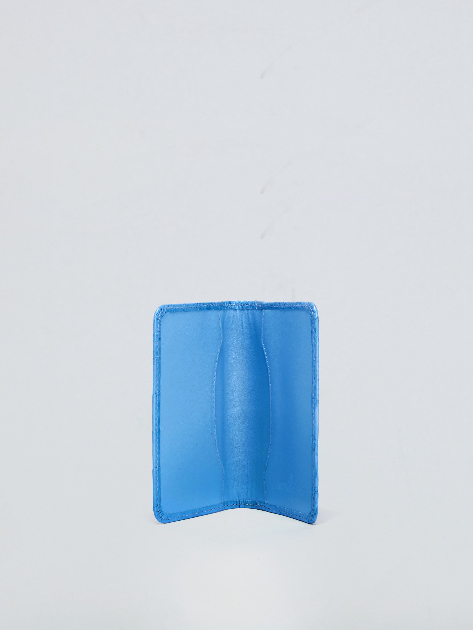Genuine Audemars Piguet alligator leather business card wallet with smooth calf leather lining. 1 card pocket on back and 2 card pockets inside. Metal AP logo outside and debossed text inside. Approx. 3" x 5" closed size. Comes with original branded dust bag and box. New old stock, unused.