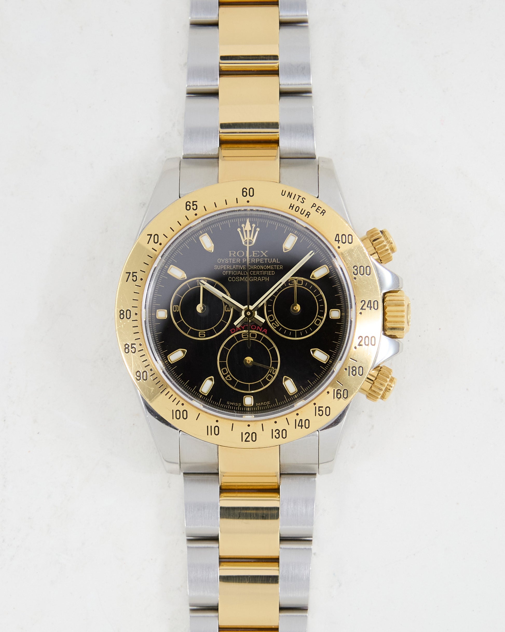 ROLEX DAYTONA BLACK DIAL IN STEEL & GOLD ON OYSTER BRACELET