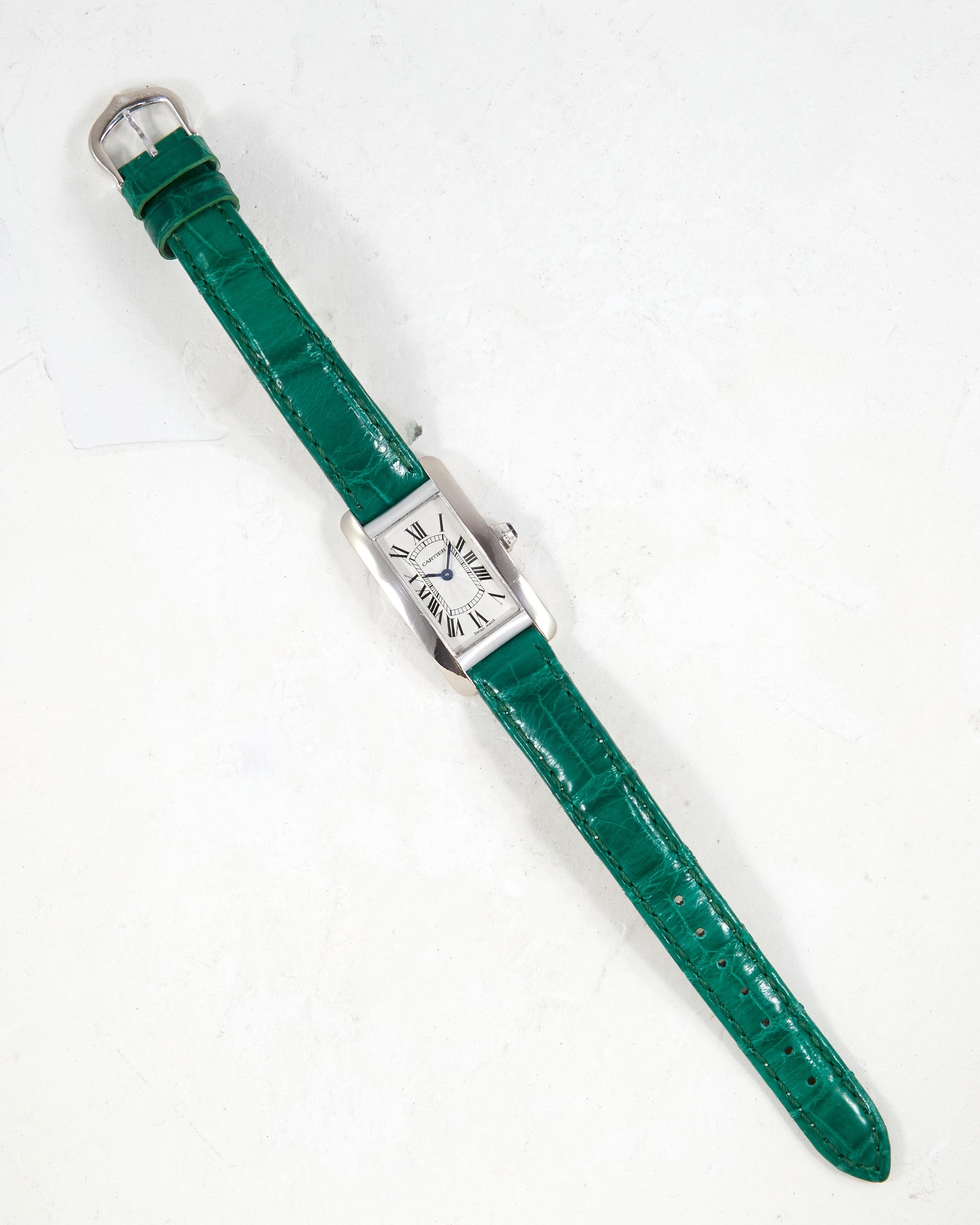 Cartier Tank Américaine 2489 in White Gold Case on Green Cartier Strap with Cartier Buckle