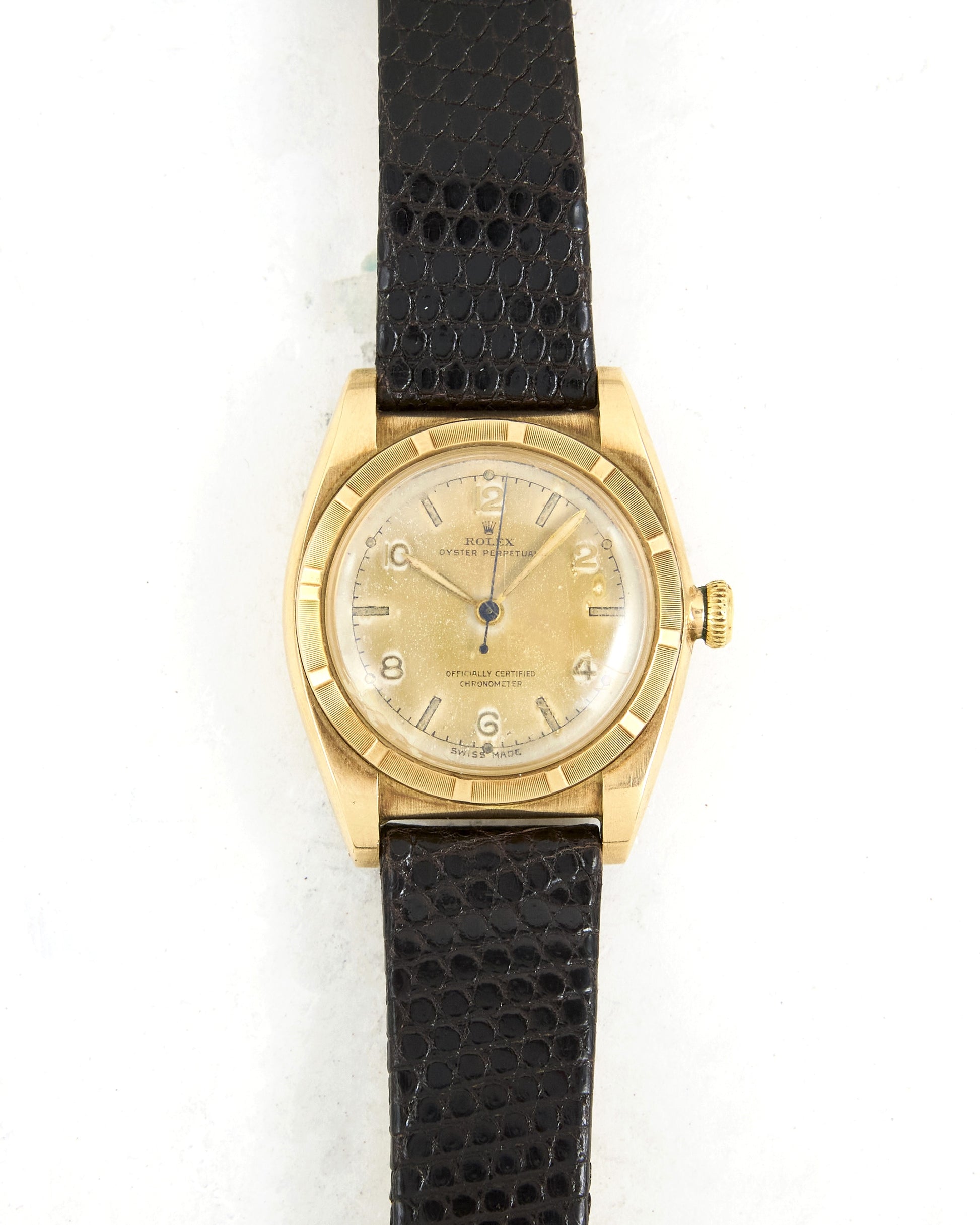 Rolex Bubbleback Cream Radium Dial in 14K Yellow Gold Case